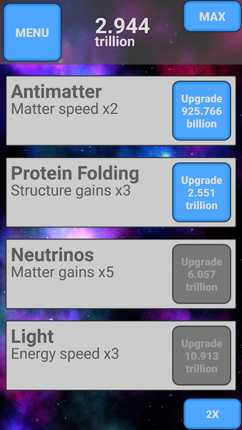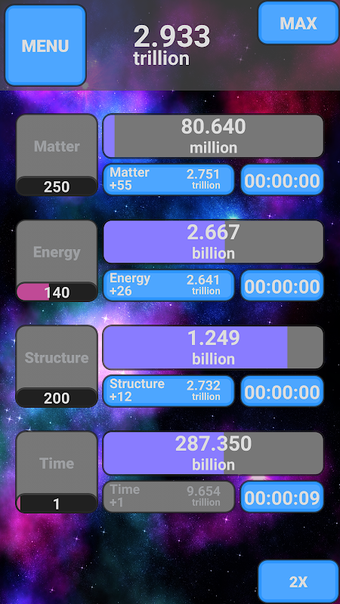 Permainan ini menawarkan berbagai fitur menarik, seperti sumber daya yang dapat dibuka, dibeli, dan ditingkatkan. Selain itu, elemen cerita akan muncul seiring kemajuan pemain, memberikan nuansa yang lebih mendalam pada pengalaman bermain. Terdapat juga mekanik reset yang memungkinkan pemain untuk memulai kembali dengan keuntungan yang diperoleh dari kemajuan sebelumnya.